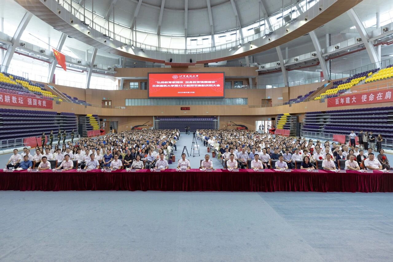 9月10日下午,“弘揚教育家精神 投身教育強國建設”北京建筑大學第41個教師節表彰慶祝大會伴隨著莊嚴的國歌聲在大興校區綜合體育館隆重舉行。