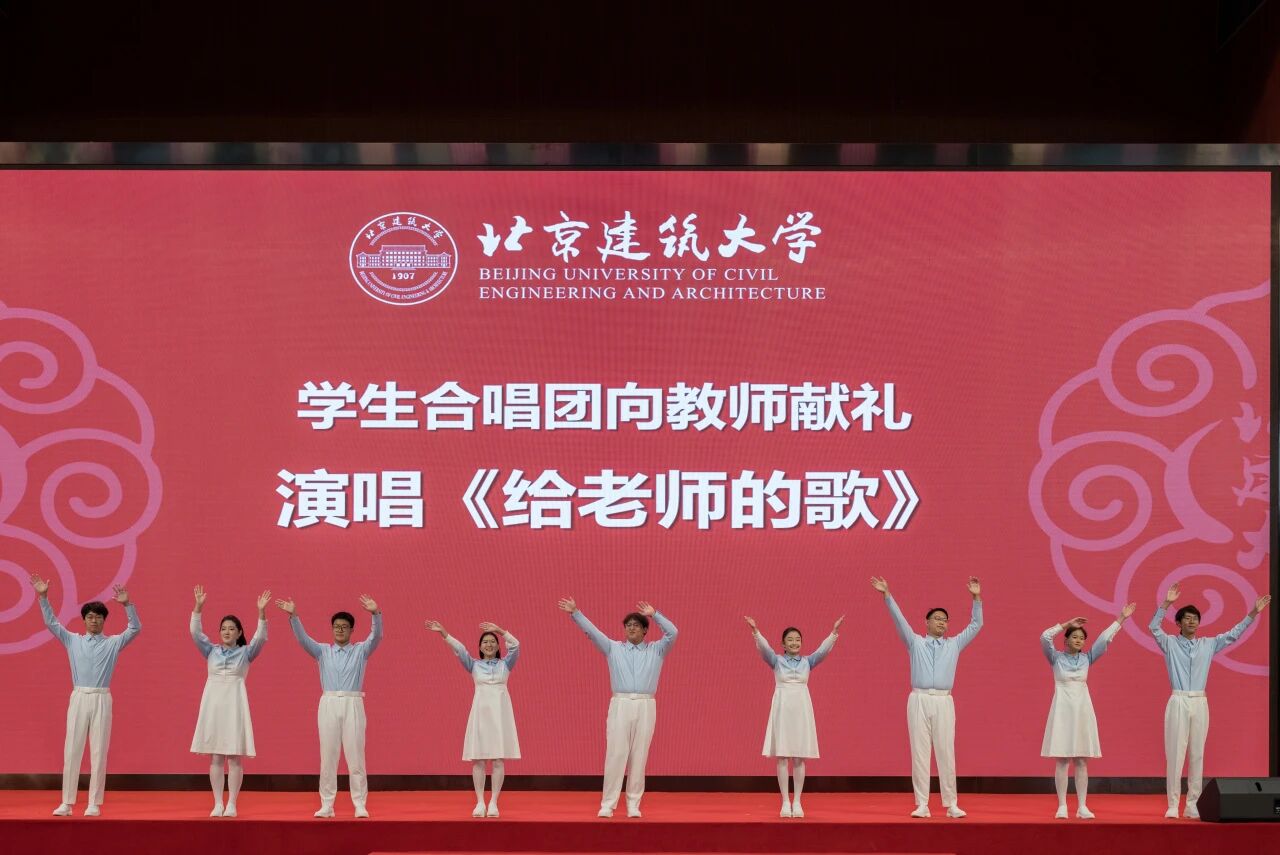 會上,與會人員還一同觀看了《耕耘建大,致敬芳華》大會視頻,我校參加中國人民抗日戰爭暨世界反法西斯戰爭勝利80周年紀念活動的合唱團成員代表向教師獻禮,演唱《給老師的歌》。