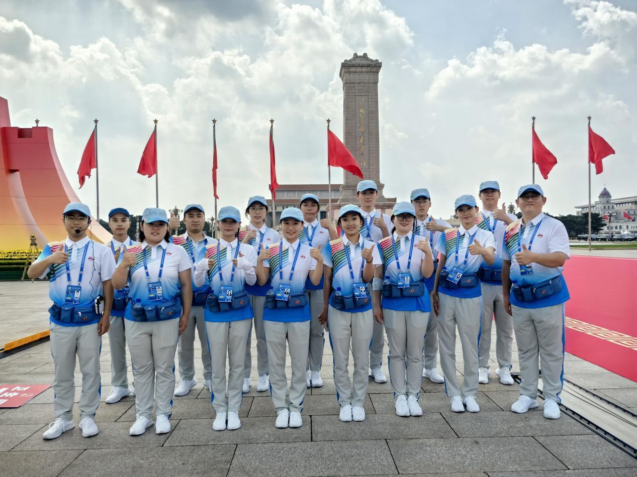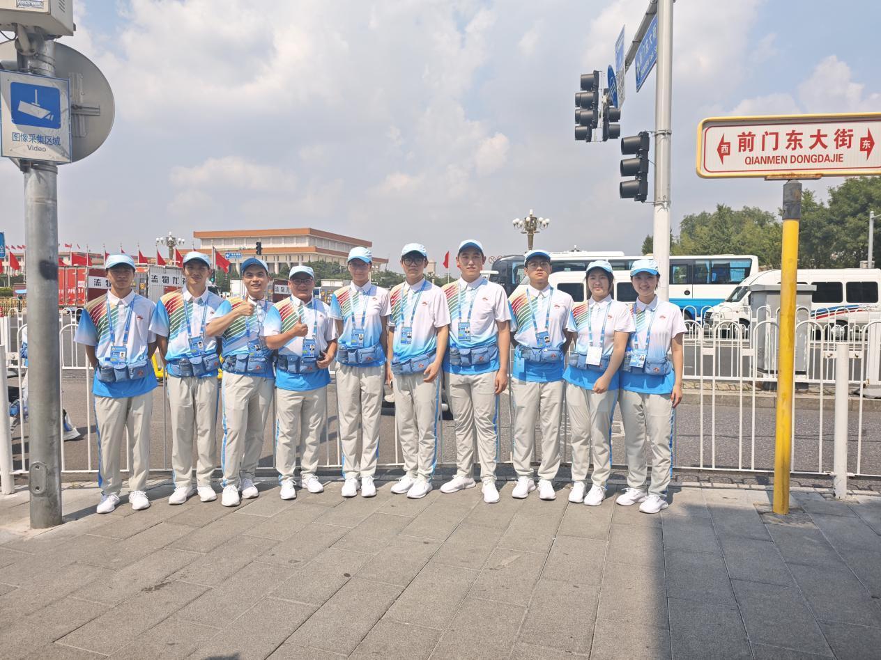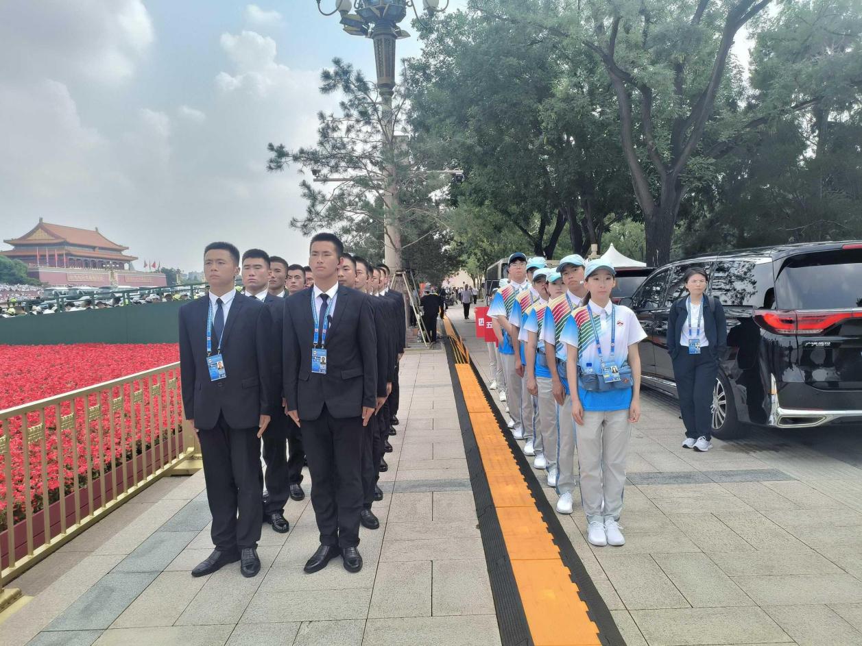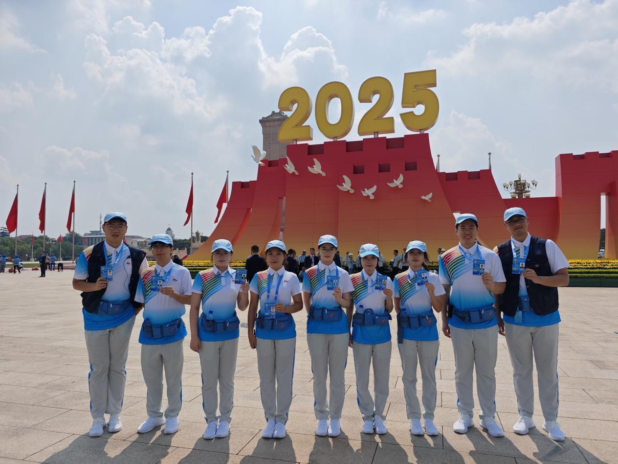 與此同時,由北建大107名師生組成的志愿者團隊分布在廣場觀眾引導、安檢服務、首都博物館集結點引導等崗位,以“零失誤、高標準、高效率”的服務贏得了高度評價。從2日晚集結到3日活動結束,志愿者們用專業與熱忱為紀念活動保駕護航。廣場上志愿者面帶微笑提供熱情細致服務,協助完成安檢工作引導、觀禮人員前往座位區,在遠端,志愿者組織觀禮人員有序集結、疏散。